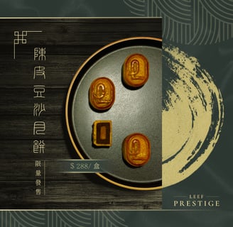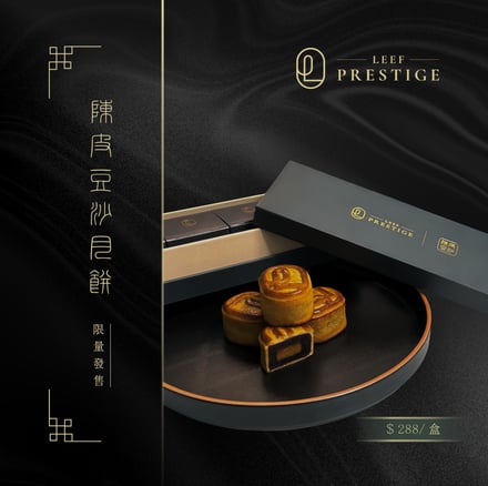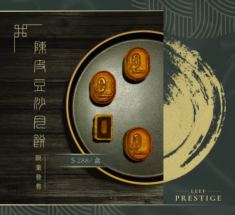 由 LEEF Prestige 為中秋而研製的陳皮豆沙月餅,入口即化的細膩豆沙配以陳皮的清香,甜而不膩,將經典風味與現代工藝完美結合。